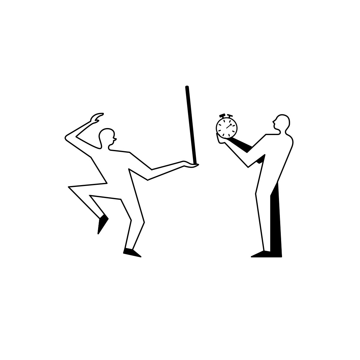 Eleven med stoppeklokke tar tiden på hvor lenge den andre eleven klarer å balansere pekestokken på pekefingeren. Klokken stoppes om pekestokken faller eller berører en annen del av kroppen enn pekefingeren.